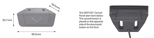 With the small size, the MCP-031 Control Panel/keypad can easily be integrated into the design of a worktable or similar applications which includes lifting columns or actuators. The control panel for mounting under the table, are fastened to the table top from below with 2 screws.